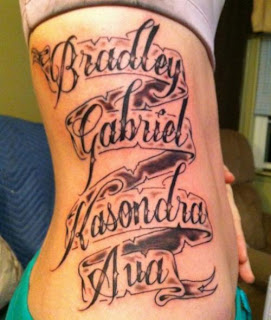 A name tattoo is a token of loyalty and eternal remembrance and realistically to a parent there is nothing more of a masterpiece than their children.